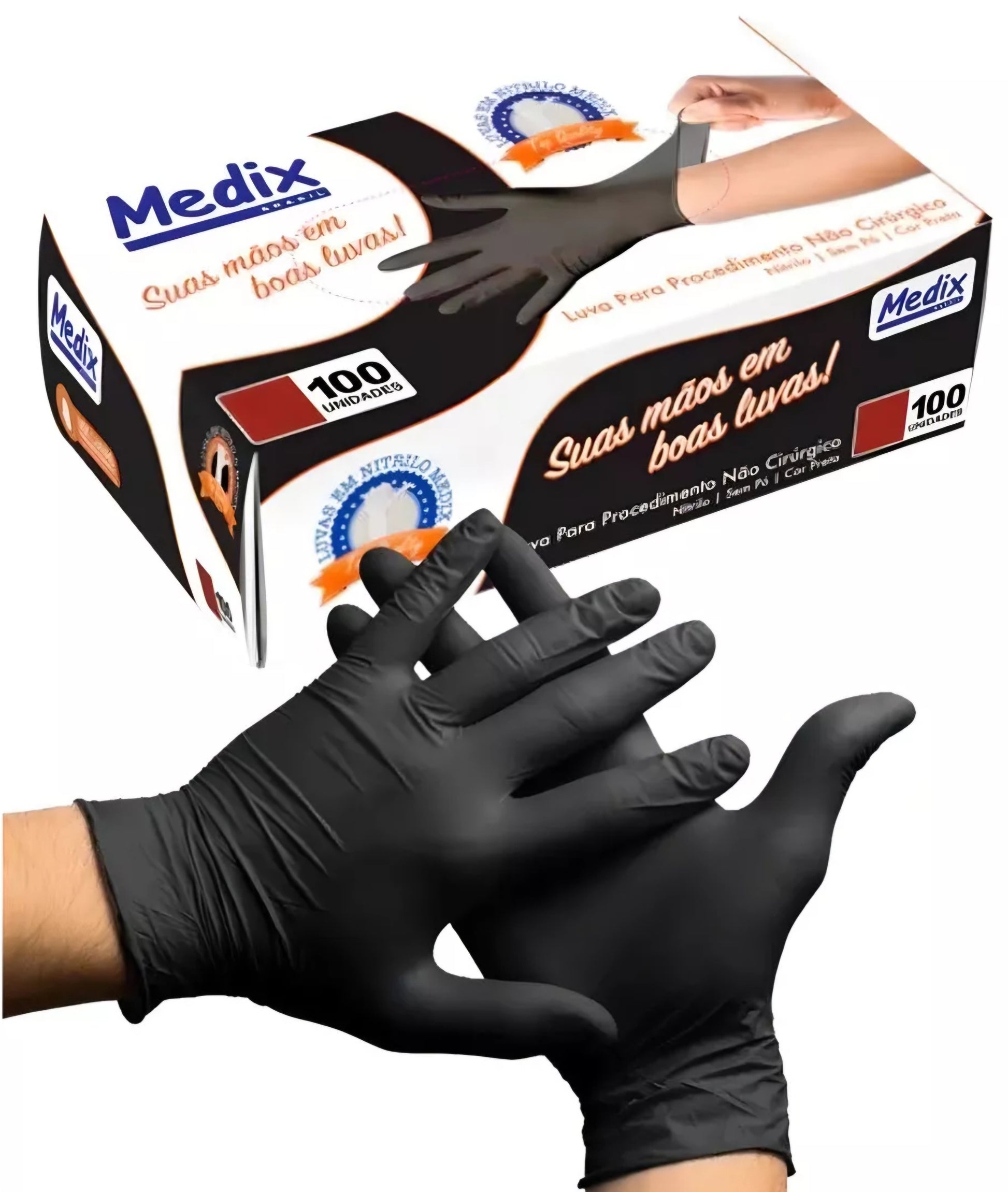 Luva Nitrílica Preta Medix Sem Pó G — Caixa com 100 unidades